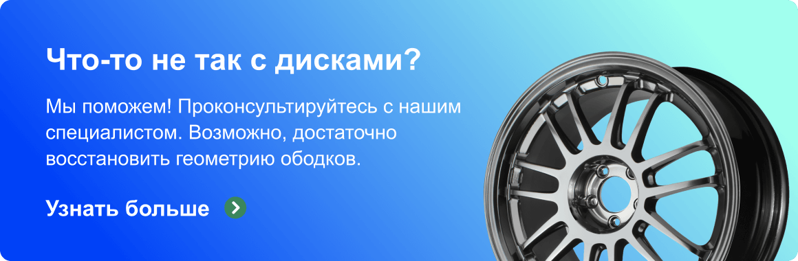 Обработайте диски очистителем — это вернет колесам опрятный вид, смоет грязь и реагенты. А если заметили вмятины и сколы на дисках, приходите к нам за новыми.