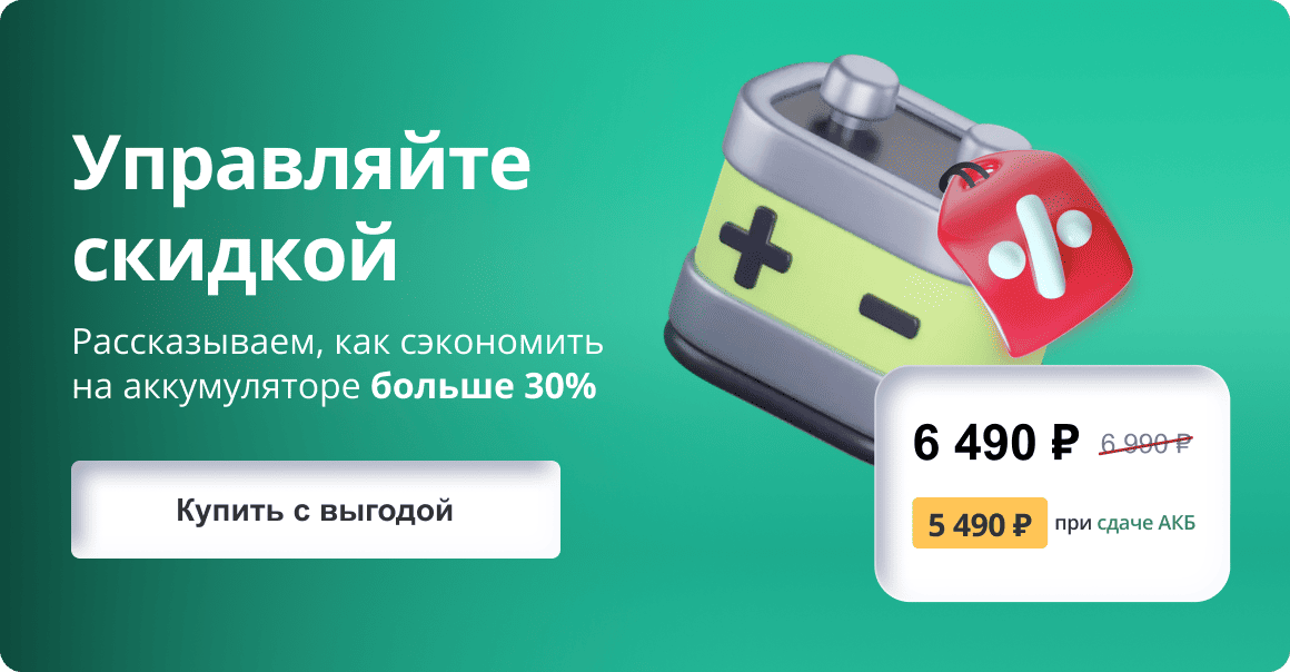 Найдите на сайте аккумулятор с перечеркнутой ценой — он участвует в акции